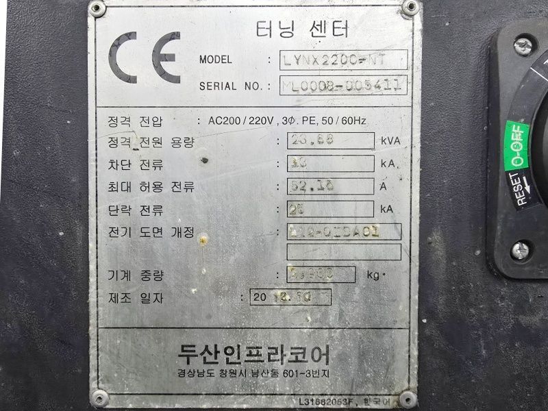 두산8인치CNC선반 LYNX220C-NT / 3514-0022