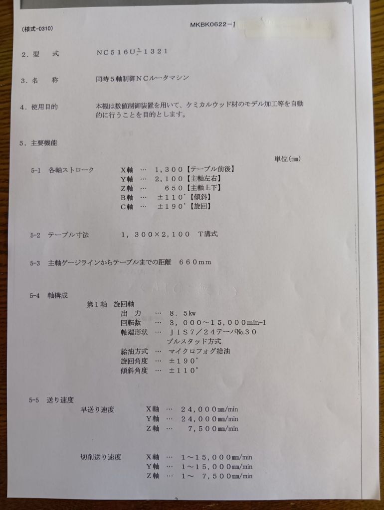 SHODA 목형5축가공 X-1600 Y-1200 -Z600 B-110도 U-190도 RPM-15000