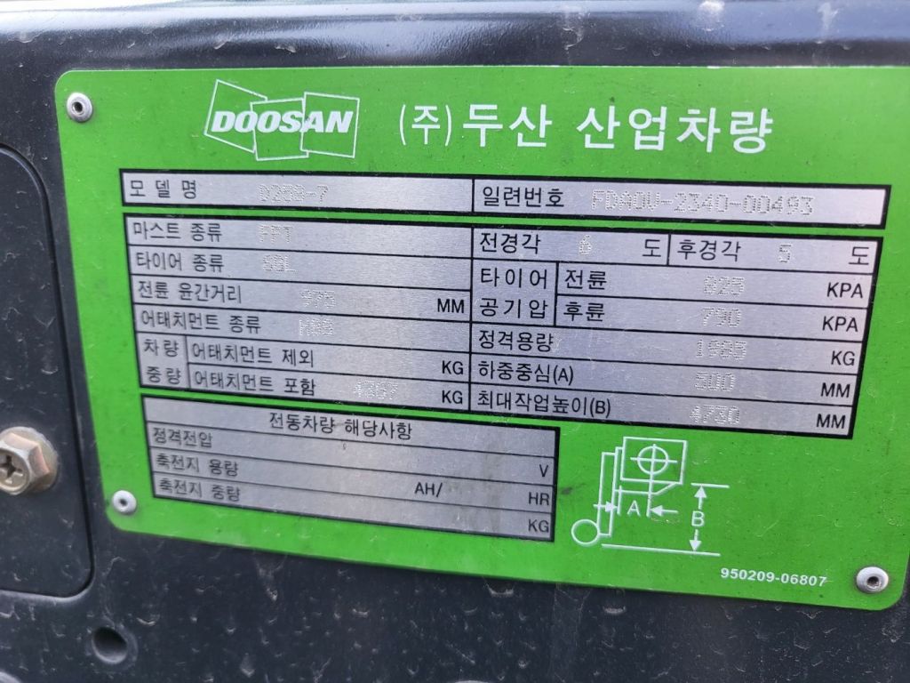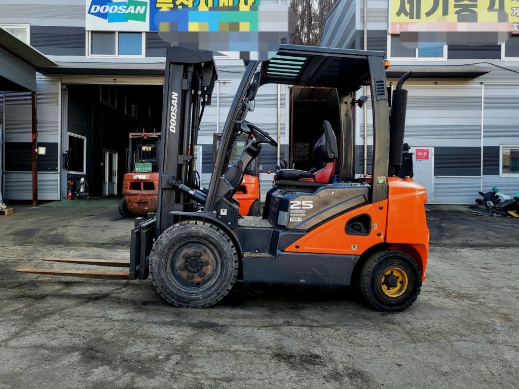 두산 16년식 2.5톤 3단마스트 사이드쉬프트 중고지게차 /