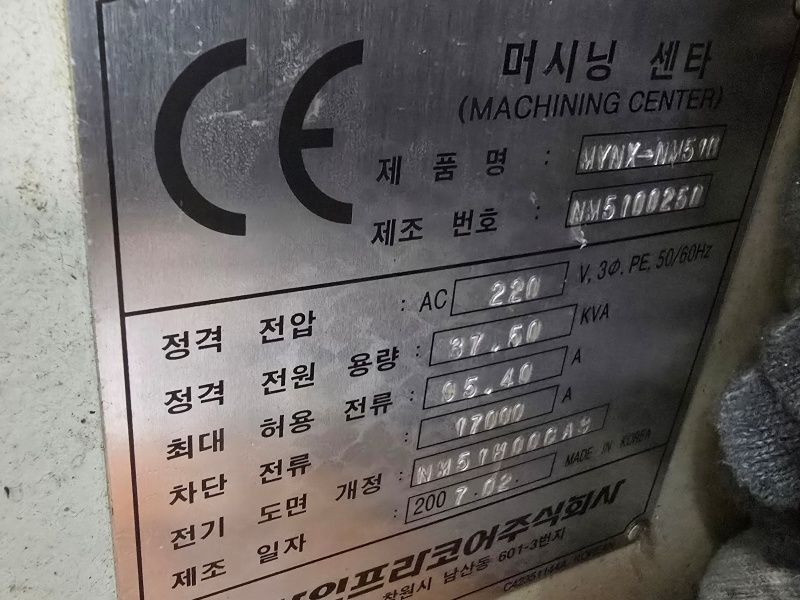 두산 5호 수직머시닝센터 NM510/BT40 2007년 바이스외 사용공구 /
